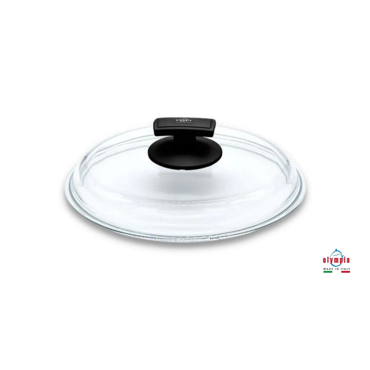 Crystal glass lid, in crystalline pyrex glass, high transparency and resistance to high temperatures. Knob in athermic bakelite, T shape for an easy and safe grip. Edge with space for steam vent. Dishwasher safe. Solid and stable on the pots.